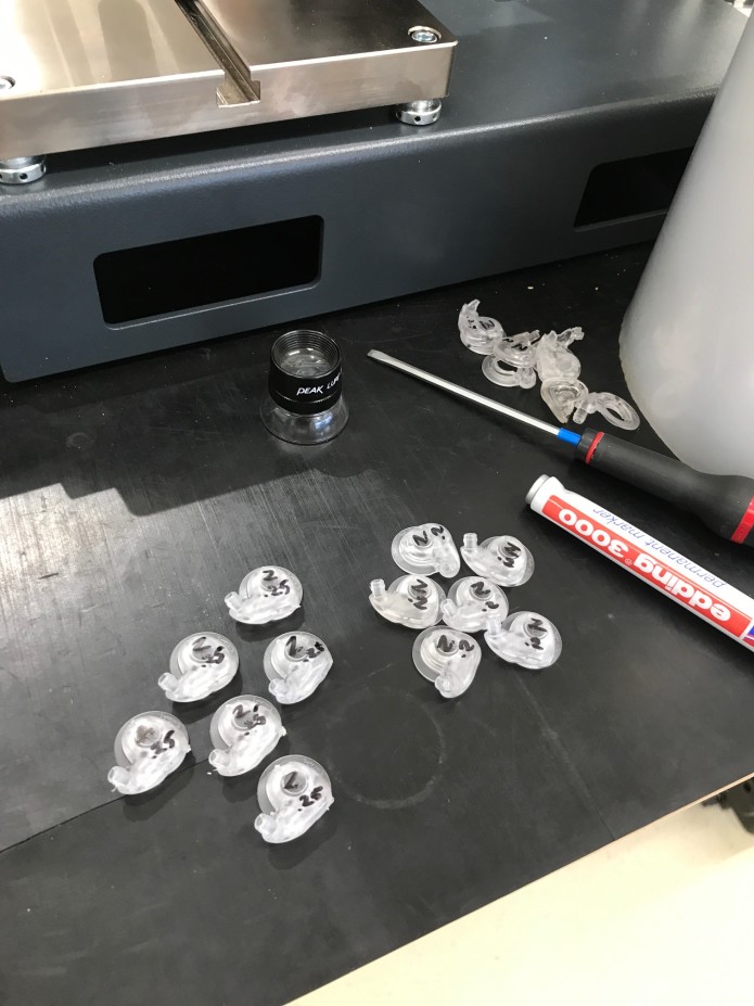 We also created lab hybrids that used both injection molded parts and rapid prototyped adjustments. This to test what changes we wanted to make and how ‘aggressive’ we could make these adjustments: change fully right away, or use some steps just to be sure to keep steel-save. We also made more advanced changes to the internals design while we were at it. In total in Holland, we have made about 4 iterations on the design.