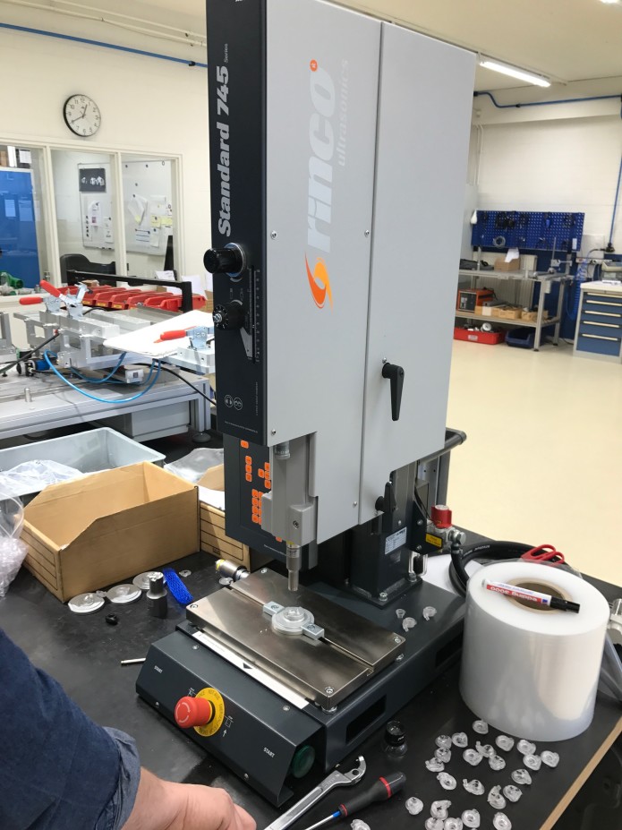 Ultrasonic welding at this level is a very delicate procedure, where the parts need to be aligned perfectly. The welding horns needed to be adjusted as well to best fit all the Knops parts, again by making small changes. Our expert has handed over the machine and at this moment the horns are getting the last adjustments. We have been ramping up test batches in the ultrasonic welder over the last weeks, also to see if we are going to purchase even more machines for the production line.