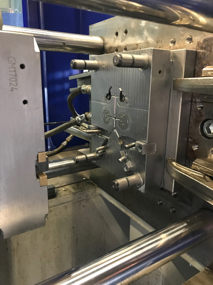When arrived at the production company in Amsterdam, we immediately tested the molds on the machine and already find out some optimization needed. After the molds open, the plastic parts need to drop down out, but instead, it stuck to the mold. So adjustments needed to be made.