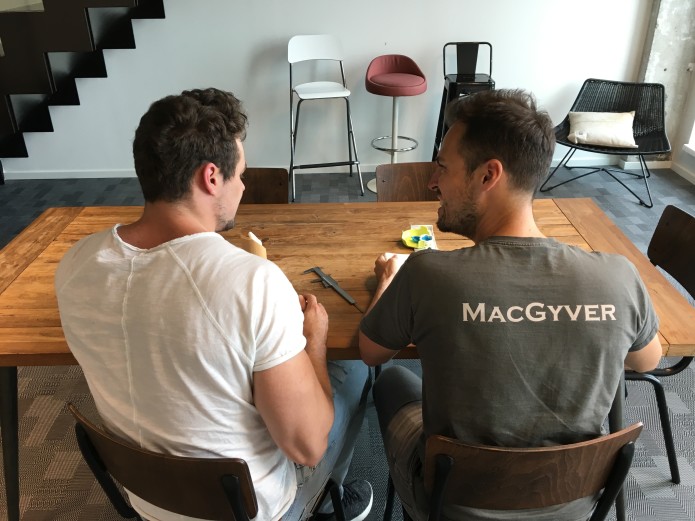 One of the founders, Koen, wearing the latest prototype of Knops.
